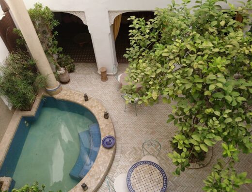 Closed for nearly 30 years, the Riad had remained intact with its centuries-old materials. In 2004 the new owner took charge of bringing the building up to standard and carried out the essential work to reinforce the structure, the layout of the 5 bedrooms and their bathrooms with the greatest respect for art and Moroccan craftsmanship while retaining period materials